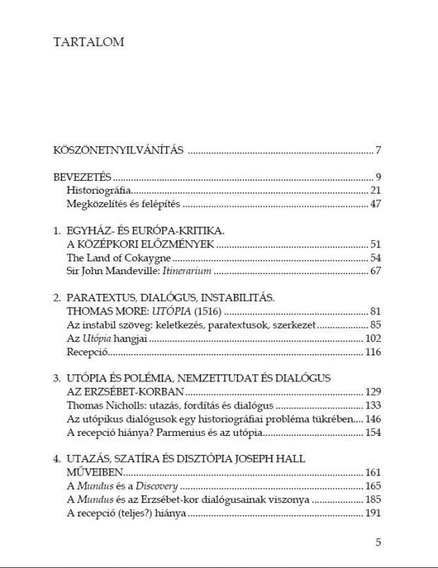 Utopikus.com is undergoing a major update, due to be finished by the end of this year times. Old materials will still be available, but the new version will be more focused on my upcoming Hungarian monograph on the topic (title: The Hungarian History of English Utopian Literature, to be published by Erdélyi-Múzeum Egyesület Kiadó in 2019). Below is the Hungarian provisional table of contents of the volume. The new version of the website will also offer brief English summaries of the chapters. |